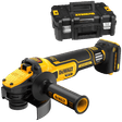 Конструкція продумана для щоденного використання:Кутова шліфувальна машина з регульованою частотою обертання оснащена технологієюFLEXVOLT ADVANTAGE, яка в поєднанні з акумуляторомXR FLEXVOLT робить інструмент більш потужним, ніж раніше!Унікальний електронний модуль з технологією ідентифікації акумулятора дозволяє інструменту розпізнавати, коли батареюXR FLEXVOLT підключено, і отримувати ще більше енергії.Сітчасті вкладки запобігають попаданню пилу у двигун, продовжуючи термін його служби.Шліфмашина має тонкий дизайн, вона покрита гумою, яка забезпечує зчеплення та зручне захоплення.Двопозиційна бічна рукоятка надійно лежить у руці, підвищує контроль над інструментом та полегшує роботу.Електронне гальмо - зупинка диска менш ніж за 2 секунди після вимкнення живлення.Електронна муфта - миттєва зупинка при заклинюванні оснастки.Електроніка - підтримка постійної потужності та оборотів під навантаженням.Плавний пуск знижує пускові струми під час запуску, виключає ривок.